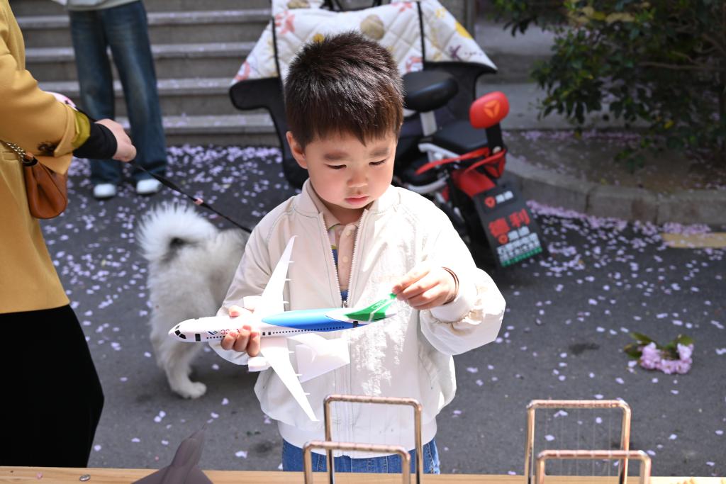科普活动在千禧龙花园社区室外广场举办,学院智创星河科普团以航天科技、3D技术为主题,立足学院学科特色,为社区居民打造了一场集科普宣讲、实物展示、动手体验于一体的特色科普活动。“大家看这款3D打印的C919模型,每一个零部件的细节都精准还原,从机身轮廓到机翼弧度,都能让我们直观感受我国航空工业的飞速发展。”志愿者朱柯豪在展品前细致讲解道。在互动体验环节,志愿者们有序摆放天文望远镜、3D打印系列展品,耐心调试天文仪器,引导居民轮流观测天空,细致讲解天文观测的基本方法、常见天体的识别技巧,手把手教大家调整焦距;同时,通过3D打印的投石机、歼10战机等模型,讲解3D打印的原理、操作流程及应用场景,让居民直观感受科技的便捷与乐趣。