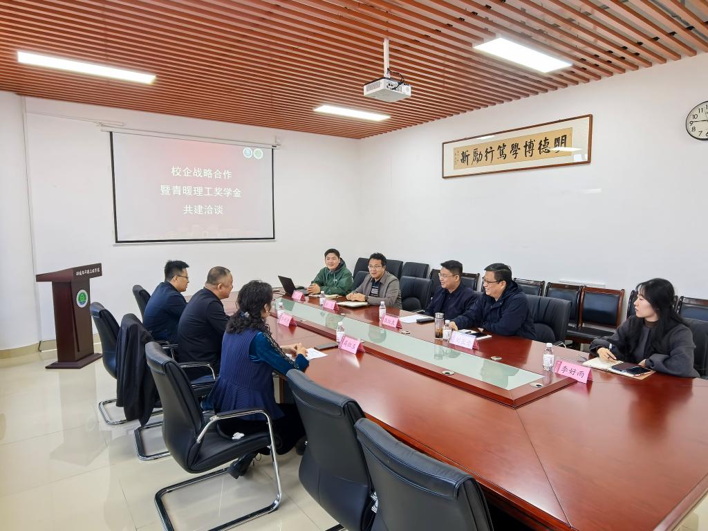 招聘会期间,青岛市暖通商会一行到访学院,专程就进一步深化校企合作事宜进行洽谈。双方围绕人才培养、实习实训基地建设、产学研协同创新等内容达成多项合作共识。为进一步激励学院学子成长成才,暖通商会特在学院设立“青暖理工”奖学金,用于奖励品学兼优、在暖通及相关领域表现突出的学生。该奖学金的设立,既是行业对学院人才培养质量的高度认可,也为校企协同育人注入了新的活力。