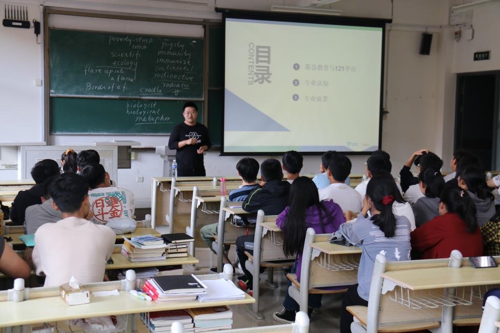 在校企专业会场,英谷教育王万琦老师,用风趣幽默的讲述方式,就英谷教育与121平台、专业认知、专业前景向通信工程校企专业的同学们进行了精彩解说,让校企专业的同学们以最快的方式,走进英谷教育的校企合作教学模式。通信工程教研室主任王绪虎就通信工程校企专业的专业培养方案、教学大纲、科研进展、毕业去向等相关事宜进行专业介绍。