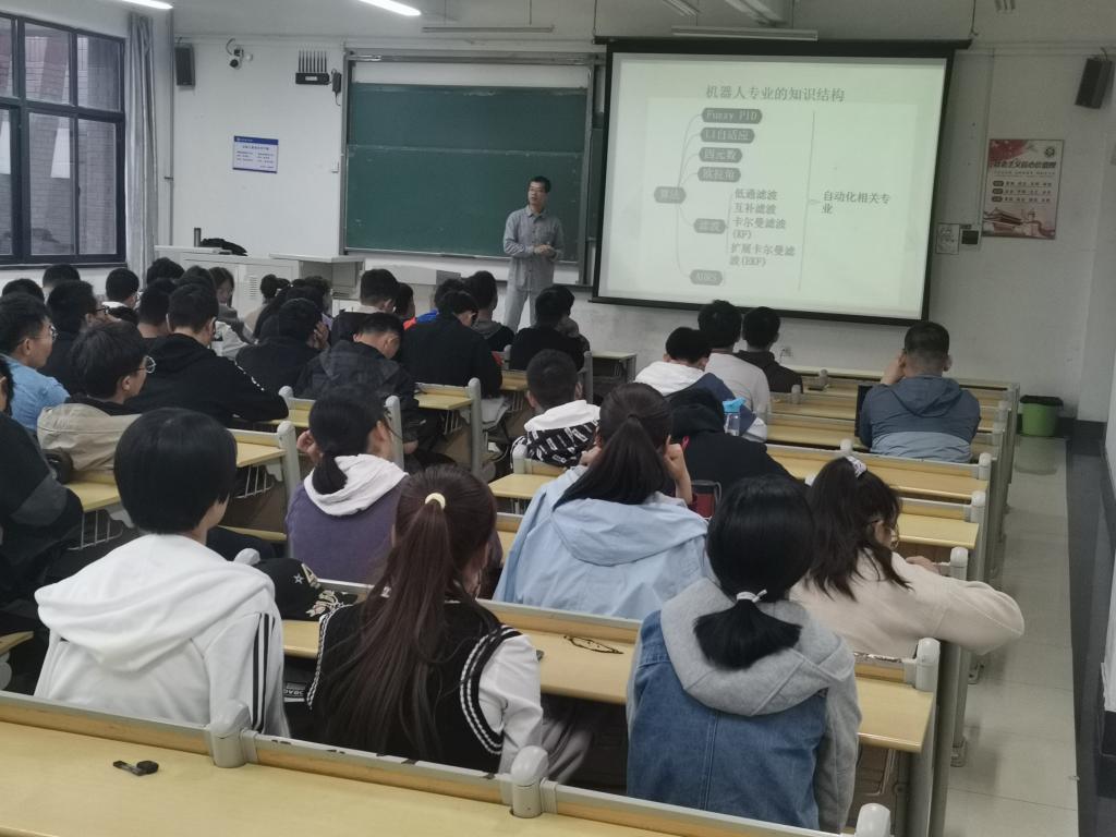 专业教育大会上,三位老师分别从本专业的专业发展历程、专业课程体系、师资队伍及发展前景进行了介绍。杨世忠主任还重点就建筑电气与智能化专业的培养要求及就业前景与学生进行了交流。庞清乐老师着重介绍了近年来电气专业的学科竞赛、创新创业项目,并特别强调电气专业以学科竞赛为依托,大力开展大学生的科技实践与科技创新活动。王言前就机器人专业的专业特点、无人驾驶技术、专业课程安排进行了深入阐释。三位老师还结合省级创新创业项目和近年来我院学子获得各级别奖项的案例,教育学生大学期间一定要掌握扎实专业知识,为未来职业规划做好铺垫。
