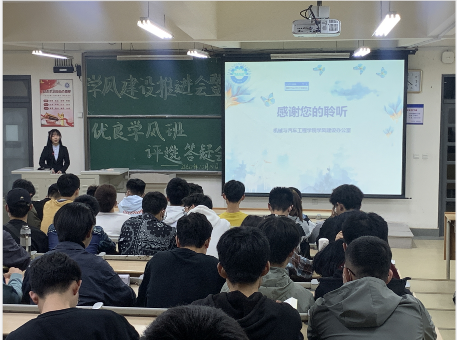 为推动学院优良学风建设,激励进步,让同学们深入了解优良学风班评选要求,机械与汽车工程学院于10月19日晚在嘉陵江路校区主教学楼B232举办学风建设推进会暨优良学风班评选答疑会,2017级、2018级、2019级各班班长、学习委员等近100人参加此次会议。