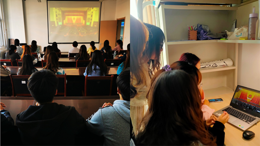 学生教室宿舍多样学习:习近平总书记的讲话充满豪情与斗志、见证情怀与担当、具有很强的政治性、思想性、针对性、指导性,为此,各班级以各种形式开展学习,掀起学习宣传习近平总书记讲话精神的热潮,有的班级由班主任组织在教室观看大会讲话,有的班级则组织学生在宿舍进行个人自修。观看的形式虽然不同,但商学院师生在学习中都感受到了抗美援朝战争的伟大胜利和巨大贡献、感悟到抗美援朝精神的历史意义和时代价值、感悟到中国共产党带领中国人民不断追求美好幸福生活的坚定立场和决心。财管193班班主任华文健组织全班同学在商学院大楼410教室观看本次大会后深受鼓舞:“当我们在工作中遇到各种风险挑战,面对各种阻力压力时,我们也要用伟大抗美援朝精神,逢山开路、遇水架桥,腿肚子不会抖,腰杆子不会弯,不断推进工作开展,不断书写中华民族伟大复兴的精彩华章!”“我是人民的护兵,我的身躯属于我,我的生命属于人民!”国商181班刘奕彤在观看习近平总书记在纪念中国人民志愿军抗美援朝出国作战70周年大会上的重要讲话后,被老战士不怕牺牲,英勇顽强的精神深深打动,她表示自己将用自己的行动为实行中华民族伟大复兴的中国梦贡献青春力量!