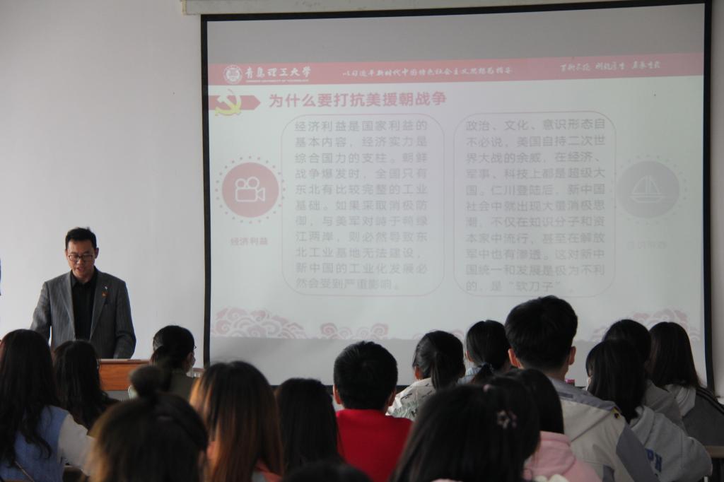 “缅怀先烈,致敬英雄”。“全体同志向抗美援朝战争中英勇牺牲的志愿军烈士们默哀!”10月23日下午,商学院党总支副书记董兰国为支部党员、第九期发展对象和积极分子精心准备的抗美援朝专题党课在庄严的氛围下正式开讲。他以众多耳熟能详的英雄人物故事切入主题,,从“为什么要打抗美援朝战争”、“为什么纪念抗美援朝战争”和“抗美援朝战争留下了什么”三个问题进行深刻剖析阐述,带领同志们回溯美国发动对朝鲜全面战争的历史背景和国际环境,以及在危急关头党和国家毅然作出抗美援朝、保家卫国的历史性决策等,总结凝练抗美援朝留给我们的爱国主义、革命乐观主义、革命英雄主义和国际主义等精神的深邃内涵。董兰国强调,伟大的抗美援朝精神是中国共产党人和人民军队崇高风范的生动写照,是中华民族传统美德和民族品格的集中展示,是以爱国主义为核心的民族精神的具体体现,永远是中国人民和中华民族的宝贵财富,希望全体团员、党员在学习和工作中时刻走在前列,继承先辈遗志,肩负伟大历史使命!