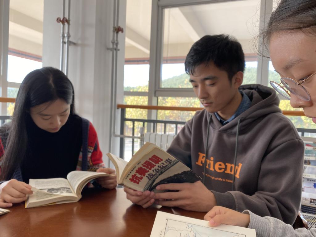 “读史明智,鉴往知来”。学生二支部的党员们手捧厚重的历史书籍,阅读描述细致而又紧张激烈的战役故事,他们的心情久久不能平复。“看到这些书,我特别震撼,惨烈的战役、恶劣的环境、超乎常人的意志都让我真切感受到了什么是习近平总书记所说的“舍生忘死,向死而生”的民族血性!”学生党员徐元元哽咽的说道。