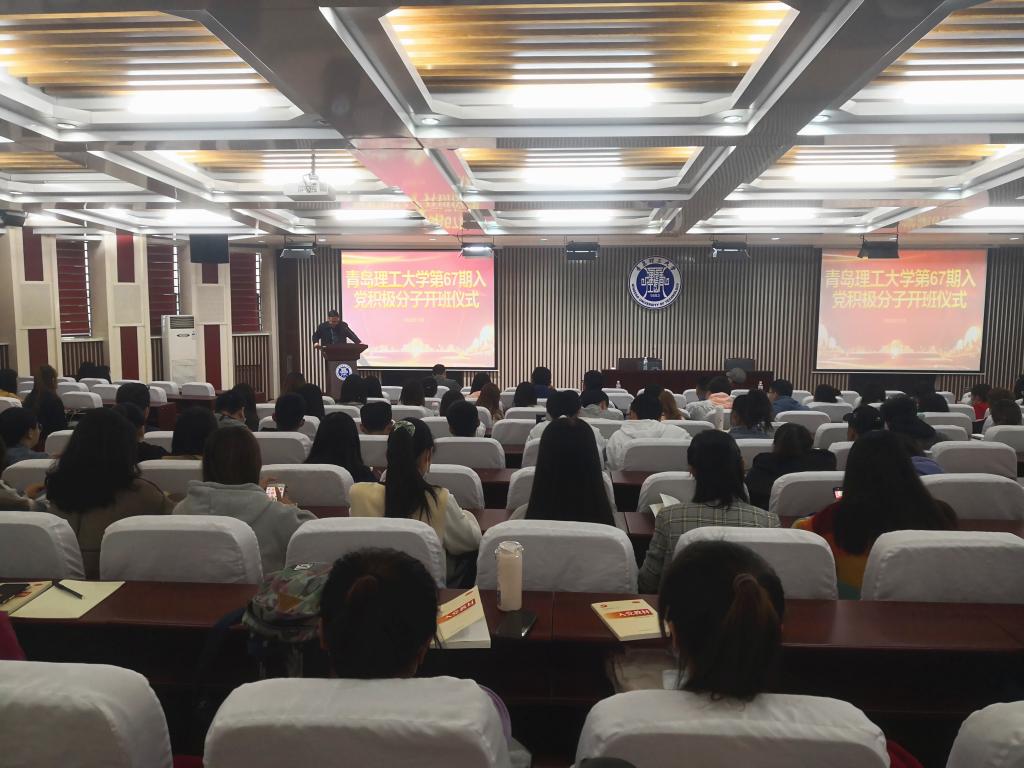为进一步加强入党积极分子基本理论知识系统教育,提高入党积极分子理论水平,切实保证新发展党员质量,10月24日下午,我校第67期入党积极分子培训班(嘉陵江路校区2班)举行开班仪式和第一讲课程。党委组织部正处级组织员林桂梅书记出席开班仪式,商学院党总支书记王粲做开班动员讲话,马克思主义学院王玉喜博士受邀担任第一讲主讲。商学院党总支副书记董兰国主持开班仪式,管理学院和商学院238名同学参加此次培训班。