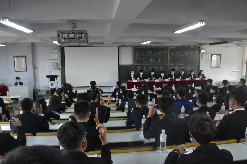 会议学习并讨论曲成平书记的讲话,审议学生会工作报告;酝酿土木工程学院第七届学生会主席团成员候选人名单,选举土木工程学院第七届学生会主席团成员,选举校第十一次学生代表大会代表名单。经过各代表团分团会议的讨论与表决,由总监票人公布计票结果,刘航宇、许宏磊、韩煦三位同学当选为学院第七届学生会主席团成员,徐健等24名同学当选为校第十一次学生代表大会代表。