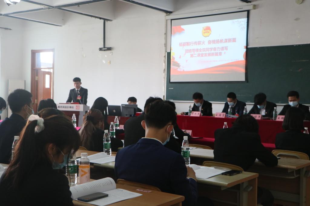 10月28日13:30,艺术与设计学院在二教416教室召开第八次学生代表大会。大会以“砥砺前行传薪火,奋楫杨帆谋新篇,团结带领全院同学奋力谱写第二课堂发展新篇章”为主题。学院党总支副书记徐佐君、学工办主任兼分团委书记王俊富、全体学工干部、校学生会代表李佩心、兄弟学院学生会代表以及学院49名学生代表共同出席了开幕式。
