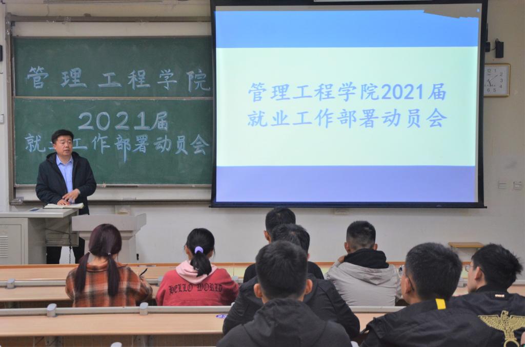 为进一步引导2021届毕业生准确把握就业形势、增强就业信心、树立正确的择业就业观,管理工程学院10月28日下午17点在主教学楼B132教室召开2021届就业工作部署动员会,管理工程学院党总支副书记于利俊、就业辅导员张翔及2017级学生代表参加了此次会议。