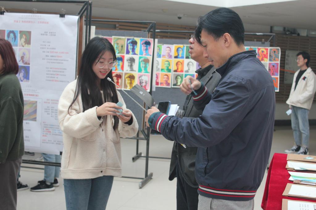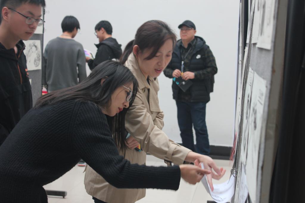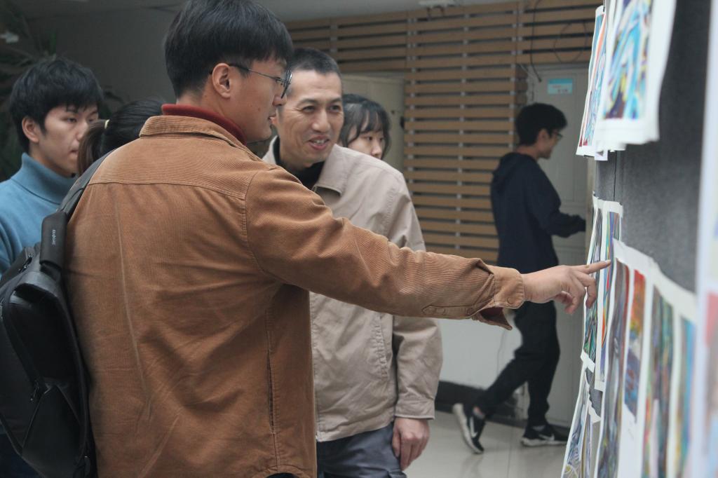王少飞老师指出此次教改已经达到了将观察、生活和设计结合在一起的目的,对学生在创作过程投入的大量精力表示肯定,教导学生们应该兼顾艺术与设计,逐步理解艺术,提高自己的艺术素养。沈源老师对同学们追求艺术的积极性提出表扬,并给出作品“少而精”的高度评价。贾超老师表示,艺术本身就需要交流与借鉴,此次展评是美术课程非常重要的一部分,希望同学们以此为机会相互交流学习,提高自身的美术基本功和艺术修养。