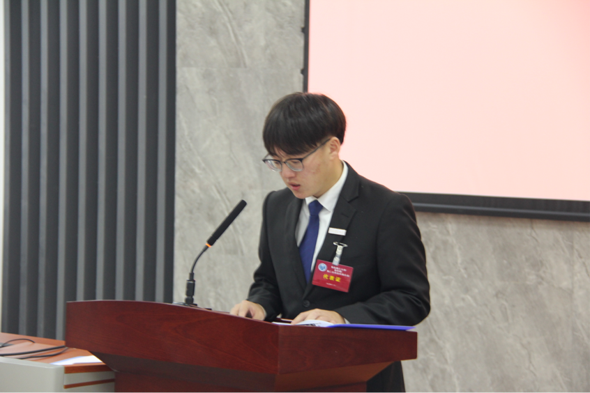 董兰国代表商学院党总支在开幕式上讲话,他充分肯定了一年来学院学生会在思想建设、文化建设、学风建设等方面起到的积极作用,以及在广大青年学生的全面发展、学校的校园建设方面做出的贡献。讲话中,他通过此次学代会向学院各组织和广大青年学生提出了三点希望:一是厚植家国情怀,树立远大抱负;二是要挑起青年担当,奏响发展篇章;三是端正态度作风,真诚服务学生。