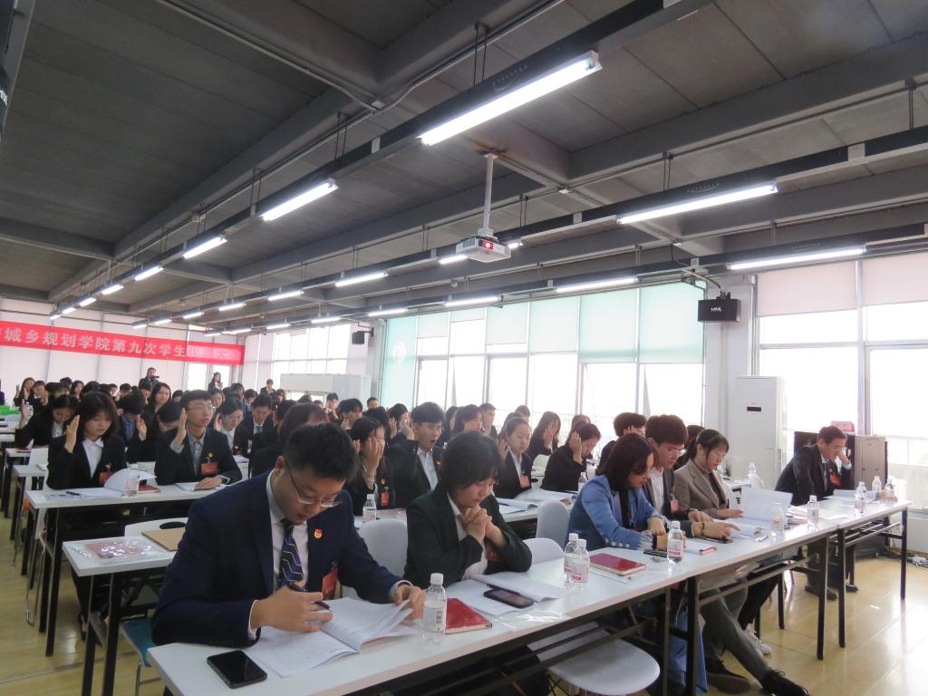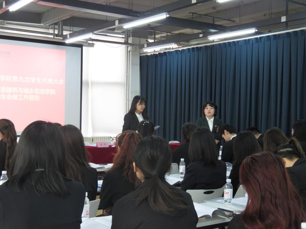 经过紧张严密的议程,大会选举产生了建筑与城乡规划学院第九届学生会主席团成员,通过了关于学生会工作报告的决议以及第九次学生代表大会常任代表名单,并向学院广大青年同学发出了《致全院青年学生倡议书》。