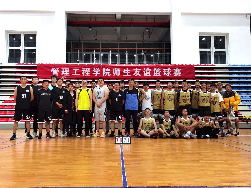 为增进师生之间情感沟通与交流,展现管理工程学院师生健康、和谐、积极进取的精神风貌,丰富师生的课余文化生活,11月4日晚六点,管理工程学院在体育馆举办师生篮球友谊赛。本次比赛由体育教学部主任张桂青、王军、代滨、李福臻、郭晓东、张钦凯、张宇等教师组成的教师联队对抗分团委书记、学工办主任陈永亮带领的管理工程学生联队,众多同学到现场加油助威,比赛全过程更是在抖音直播,共吸引了全校100多名篮球爱好者线上观看。