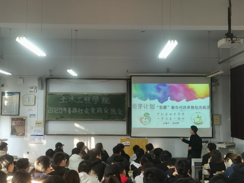 11月4日下午,土木工程学院于1教304阶举办2020年暑期社会实践交流会。学院优秀团队代表刘浩、王东浩、王明军向大家分享了暑期社会实践心得体会,交流会由分团委书记王中帅主持。