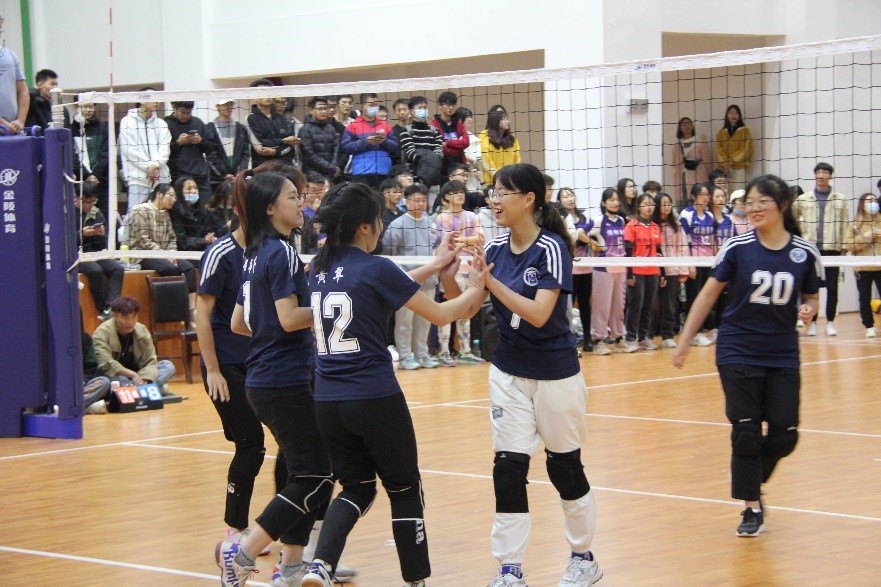 11月8日18点,女排决赛如约打响。入冬的窗外寒风凛冽,体育馆内却热情四射,加油助威声此起彼伏响彻全场。比赛还未开始,双方运动员就已跃跃欲试,大战一触即发。首局比赛一开始,商学院女排队员们打出精妙配合并通过扣球施压,无论是跃起击球,还是下蹲拦球,神态从容冷静,动作标准无误,尽显平时苦练成果,连连得分并将比分拉开,以25:19的成绩率先拿下一局。第二局比赛商院女排依旧保持着高水准高强度的发挥,凭借灵活的跑位和扎实的接发球,稳扎稳打,在取得球权后更是利用发球优势始终大比分领先对手,并以25:15拿下第二局。在赛点局第三局的比赛中,面对着对手的顽强反扑,面临着创造商院女排历史最好成绩的机会,商院女排的队员们顶住压力,在赛点局取得了8:2的良好开局。经过了长时间的对抗,已有不少选手的体力开始下滑,但她们仍旧紧咬牙关,保证了配合的流畅度和战术的完成度,最终,商院女排连下三局,以3:0的绝对优势摘得桂冠。在她们身上,无所畏惧、顽强拼搏、同甘共苦、团结奋斗的“女排精神”展现得淋漓尽致。