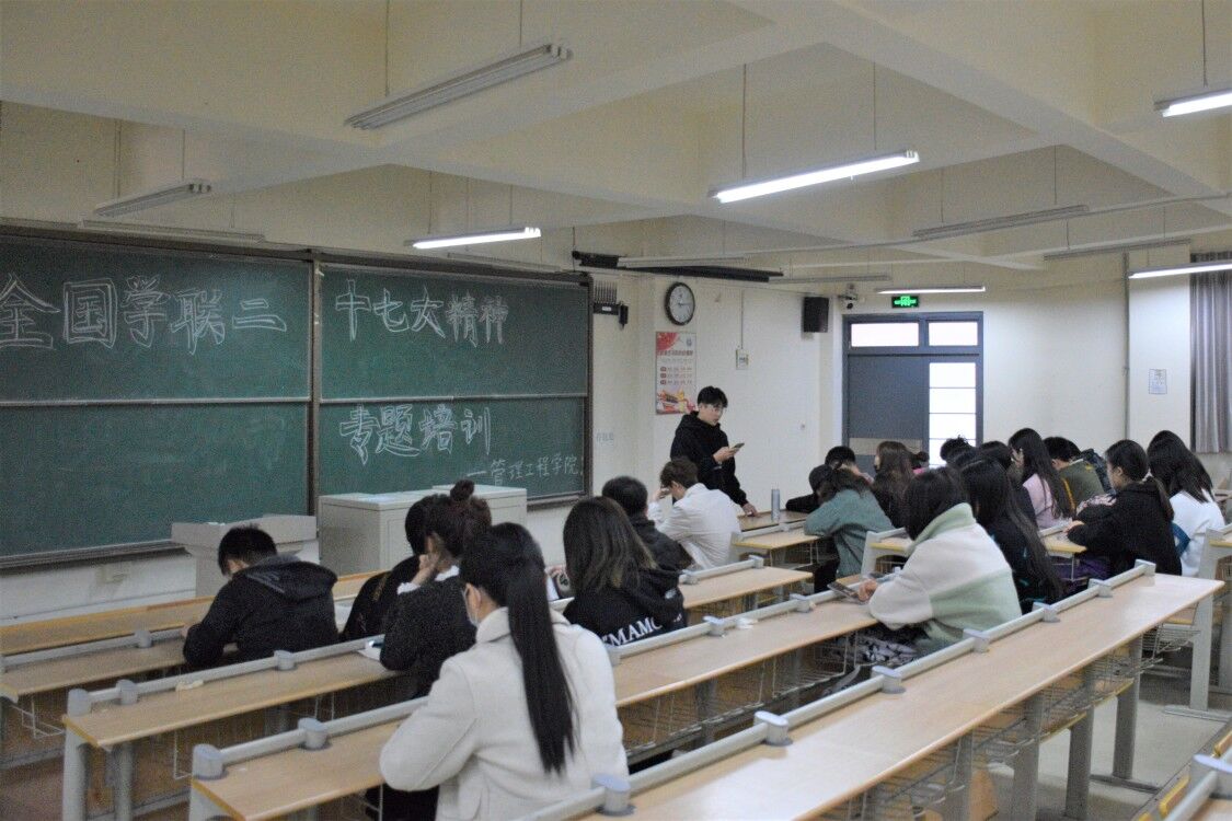 为学习贯彻全国学联第二十七次代表大会会议精神,切实强化学院学生骨干的服务意识和使命担当,引导学生坚定理想信念,勇于开拓创新,锤炼高尚品德,切实增强政治性、先进性、群众性,11月10日中午,管理工程学院组织分团委、学生会及各团支部团学骨干进行了“学习全国学联二十七大精神”专题活动。