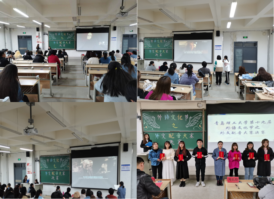 为进一步提高学生学习外语的积极性,锻炼学生外语口语能力,营造学院良好的外语学习氛围,11月15日,人文与外国语学院在嘉陵江路校区主教学楼B135举办第十九届外语文化节之外文配音大赛决赛。管理工程学院、理学院、商学院、信息与控制学院等9个学院共22组选手晋级决赛,王延红、刘长珍、李娇、孙玮等专业教师出席并担任比赛评委,分团委书记兼学工办主任马松参加本次活动。