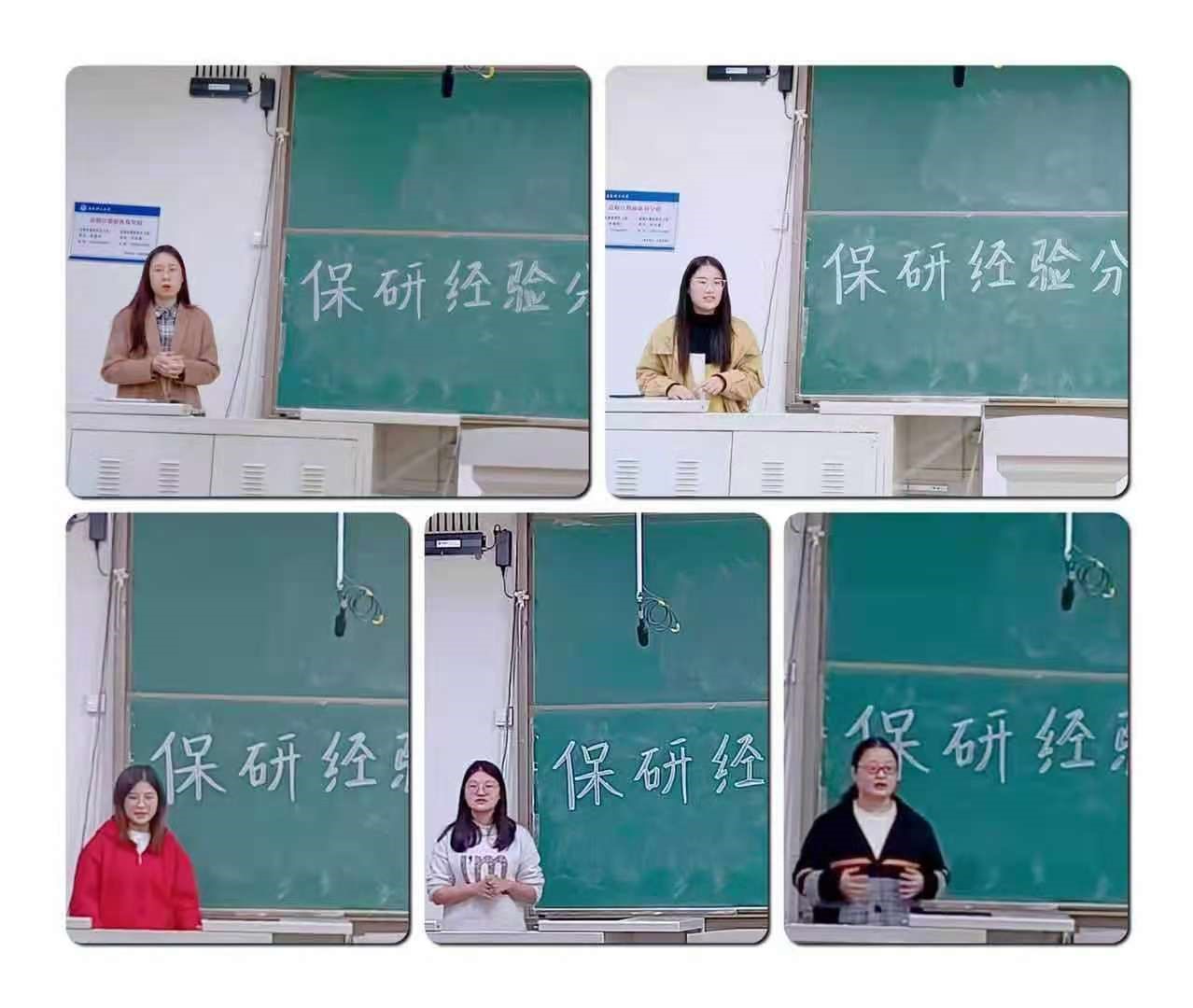 黄子航、栗贝贝结合大学四年学习经历,主要带来学习经验的交流与分享。他们鼓励大家对待所有科目、所有事情要有“明知山有虎,偏向虎山行”的勇气。在学习过程中,找到最佳学习时间、养成良好学习习惯可以达到事半功倍的效果。高肖肖、何莹分别总结参加学科类竞赛和社会服务的基本流程和注意事项,又带领大家探讨项目选择和团队中角色扮演等细节。张洁将大学生活的经历和心得娓娓道来,她四年来不断努力最后成功保研中国社会科学院大学的经历迎来同学们阵阵掌声。五位保研学子一致提出,优秀的专业成绩和英语成绩是保研的重要保障,而在竞赛科研论文等方面的努力付出也是必不可少的加分项。