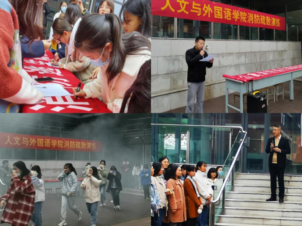 为进一步增强学生的消防安全意识,提高学生自救和防范能力,落实公寓安全管理制度,进一步加强学院安全工作,人文与外国语学院于11月18日下午2点在D3公寓楼下开展安全疏散消防演练。保卫处消防科李威及安全保卫人员现场督阵指挥,人文与外国语学院党总支副书记王振、学生处公寓管理中心主任王庆华、学院辅导员贾舒文、王才升、扎西央宗以及学院2020级全体学生参加本次演练。