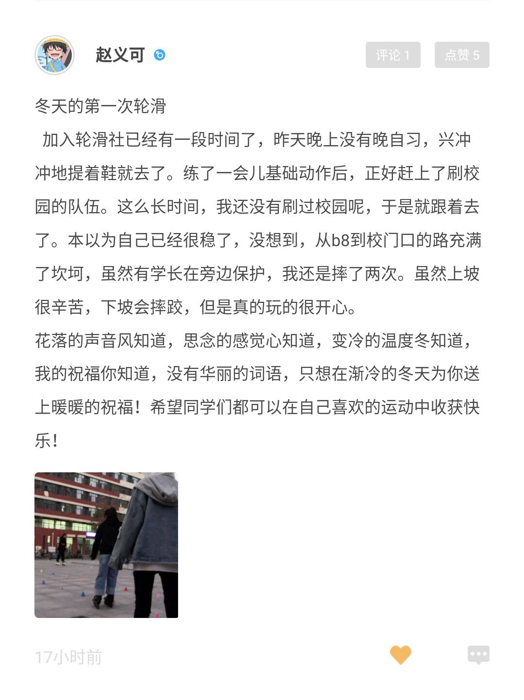 11月14日上午,活动于到梦空间开始报名,随后同学们开始在花絮中分享自己立冬之后的“第一”次经历。活动开始后,冬天的第一条秋裤、冬天的第一个自习、冬天的第一次演讲等开始陆续被分享在花絮当中。有人配上清晨的一缕阳光,说要积极向上加油学习,有人拍下一本书中的节选,向我们讲述他冬天所读到的第一个故事。更多的人选择展示自己幸福的情感生活,将另一半精心准备的礼物晒了出来,搭配上未来可期的文字;也有将相隔千里的亲友寄来的一份思念分享给大家,让这个冬天承着远方的惦念而不觉得孤单寒冷。