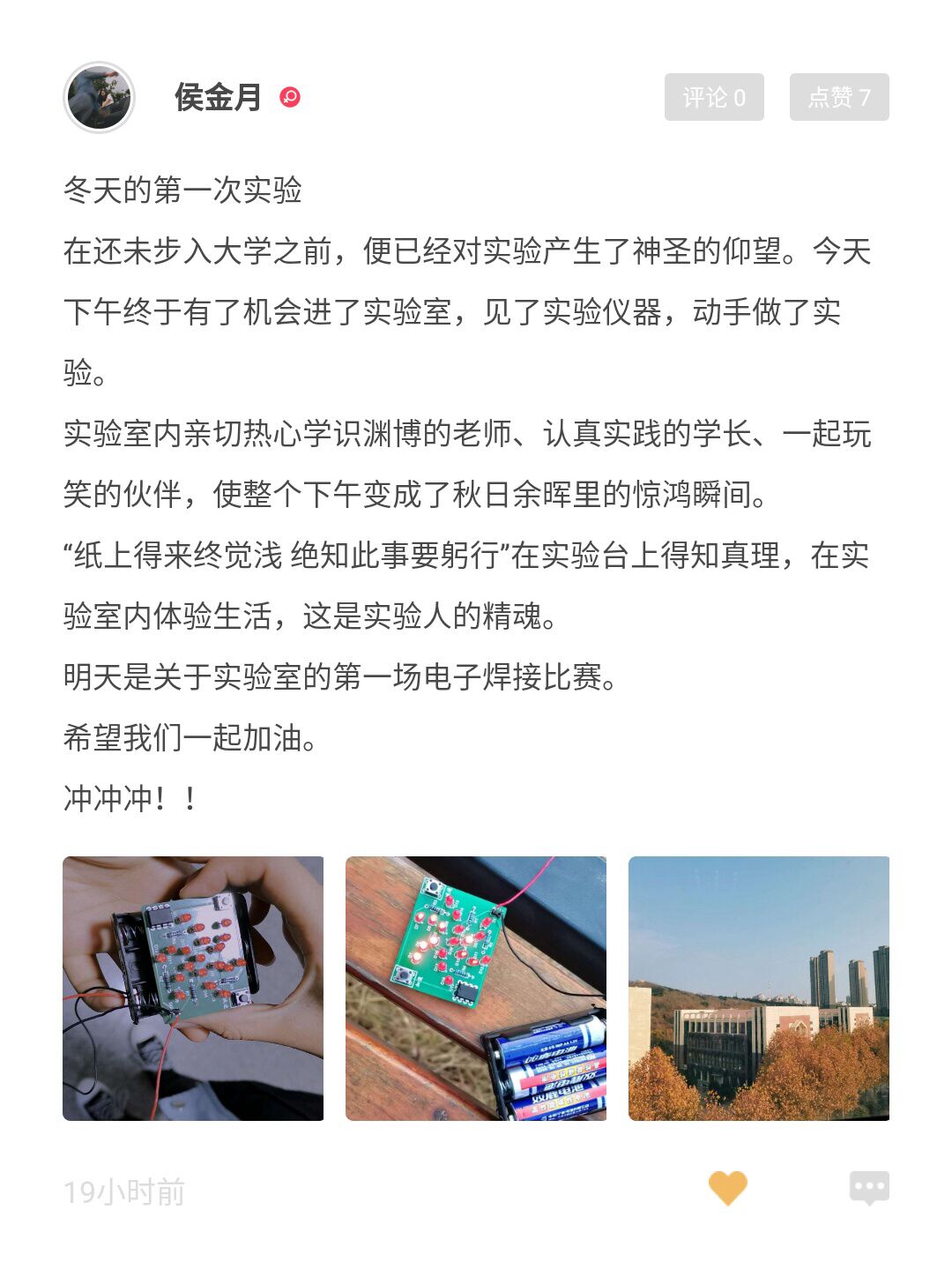 在花絮活动的陆续分享里,我们能看到有因为吃了美食十分满足的“干饭人”们,能看到因为冬天里的那第一场电影而感慨万千对未来充满希望的“动力人”们,也看见了完成自己先前从未做过的事的“挑战者”们,更看见了为了以后努力学习追逐梦想的“学习人”们……秋天的所有烦恼会被冬天的雪埋藏,在这个冬天,大家都在悄悄成长,春日到来万物复苏的那天,便是惊艳所有人的时刻。