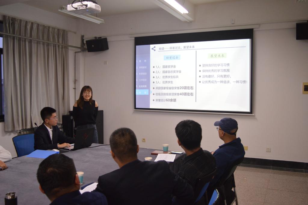 宿舍评优答辩主要分为文明宿舍和学风宿舍两个部分。在文明宿舍答辩环节中,各宿舍代表通过PPT的方式,从宿舍成员、宿舍卫生、宿舍特色活动开展等方面进行展示,充分展现了宿舍成员积极进取、温馨友爱的宿舍氛围;在学风宿舍答辩环节,各宿舍代表以学风建设为中心,从学习成绩、科技创新、实践活动等方面进行展示,以点带面,充分展现了宿舍成员勤奋好学、勇于拼搏的良好舍风。答辩中既有共同钻研学问的奋斗历程,又有一起运动娱乐的轻松画面,他们各有所长,又互相帮助,一起努力、共同进步。
