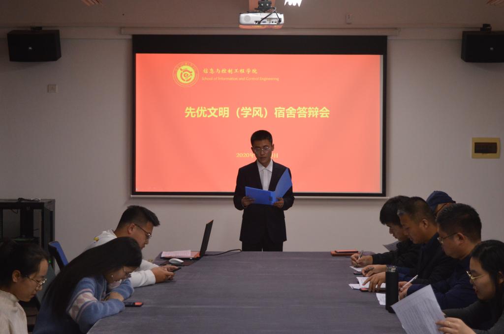 为落实学校第三次党代会精神,创建“洁净、温馨、文明、健康”的宿舍氛围,以舍风促学风,充分发挥学生公寓文化育人功能。11月18日下午,信息与控制工程学院在嘉陵江路校区主教A507举办2020年度宿舍评优答辩会。学院党总支副书记曲良波,辅导员薛腾、高腾飞、逄超、贾戈、季献涛、王超、苑晓坤,学生代表孔祥通担任答辩评委,部分学生代表参加。