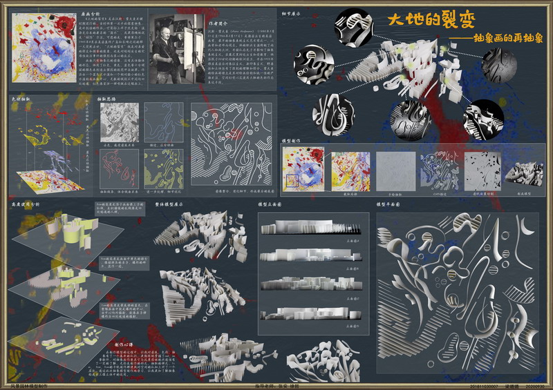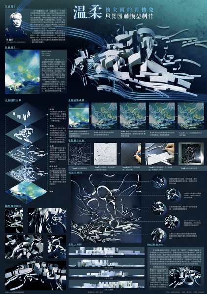 本次模型制作课程为学科专业实践课程,前期课程为风景园林规划设计概论,并行课程为风景园林建筑设计概论,后续课程为风景园林规划与设计Ⅰ,要求学生选取一幅名家抽象画,对于作家、主题、技法、构成做分析评述;做一个抽象模型;最后针对抽象画的分析,完成图纸。学生在这个过程中理论联系实际,巩固和增强对风景园林规划设计专业知识的理解和掌握;通过听取老师课堂专题讲授,增强对近现代风景园林理论专业知识的理解;最终通过模型制作,培养逻辑思辨及动手的能力。