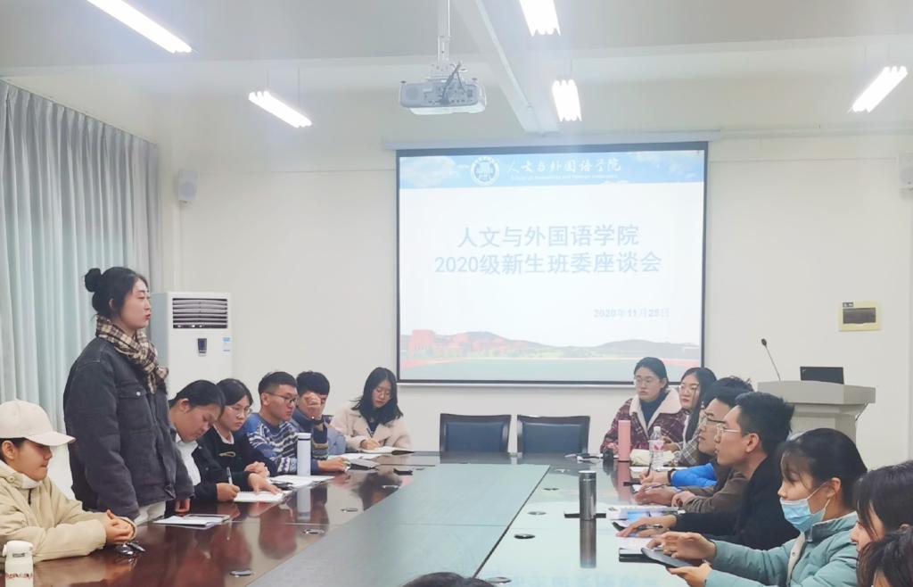 为深入了解新生在工作、学习和生活中的问题以及班委工作的进展情况,加强班集体组织建设。11月25日下午,人文与外国语学院于主教学楼A410会议室开展2020级新生班委座谈会。学院党总支副书记王振、2020级各专业班委代表参加此次座谈会,2020级辅导员王才升主持会议。