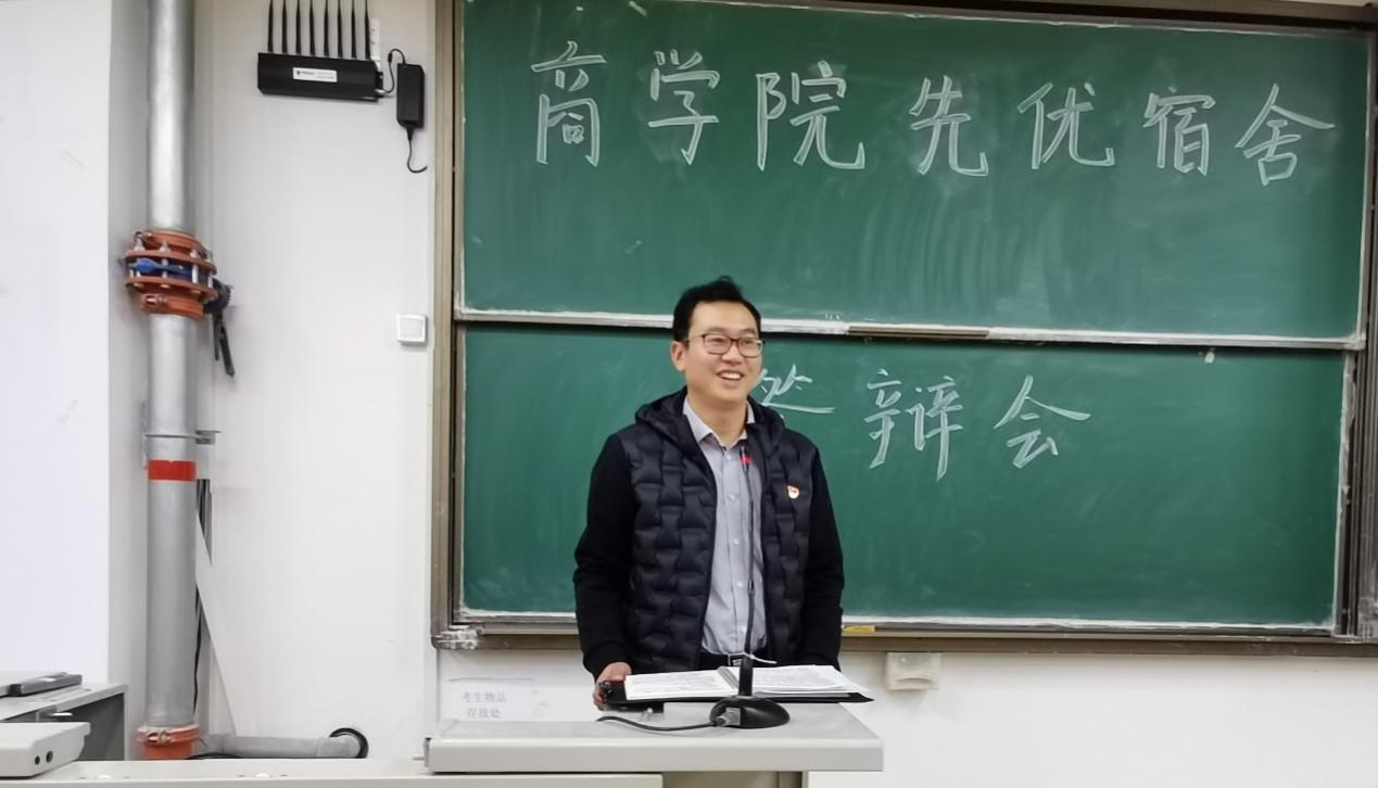 为彰显商学院以“jing”文化为核心的宿舍文化特色,发挥先优宿舍在公寓建设中的模范带头作用,近日,商学院举办先优学风宿舍、先优文明宿舍答辩会。商学院党总支副书记董兰国,辅导员冯宁、刘心芝、杨洪敏、臧瑶瑶,学生会主席团成员徐文聪、隋缘、翁佳仪参加答辩会并担任评委,商学院学生会生活权益部志愿者牟泽源主持。