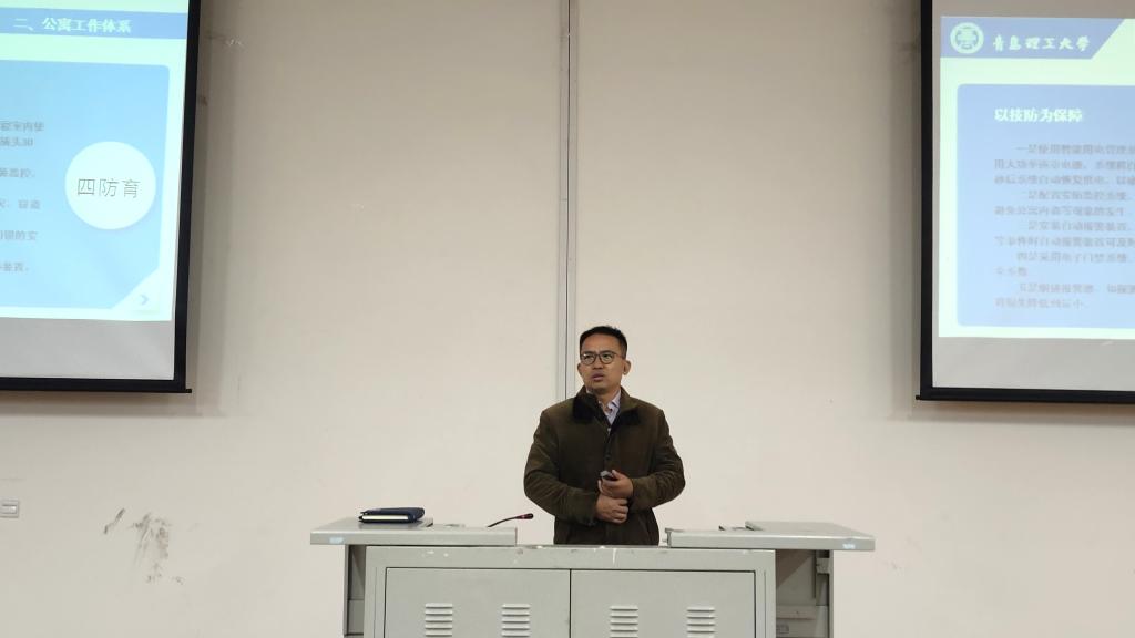 活动伊始,申维东就从公寓工作理念、公寓工作体系、建设成效、建设体系这四个方面展开详细培训,他阐述了公寓工作方针、工作宗旨、工作原则和工作要求,强调严格加强公寓管理对学生起着行为规范、培养良好习惯的重要作用。随后,他指出公寓工作要坚持教育为先、以点带面、标本兼治、协同联动的工作原则,并对学校的公寓工作体系做出重点讲述。他表示学校正在加快公寓一体化建设,完善从楼长到层长再到舍长的责任分工制度,同时也在努力加强公寓文化建设,并对学院在繁荣学生公寓文化方面的建设成效做出展示,重点提及学院文暖寓语公寓文化节成功举办了12个活动,影响达2700百人次。最后,申维东表示,希望大家重视公寓管理,积极配合学校公寓工作,共建一个和谐温暖的大家庭。会后,舍长们纷纷表示此次会议使他们受益匪浅,D3#1107舍长卢霖霖表示,一定会在今后更积极主动地配合学院公寓管理工作,加强对宿舍安全卫生及公共秩序方面的重视。