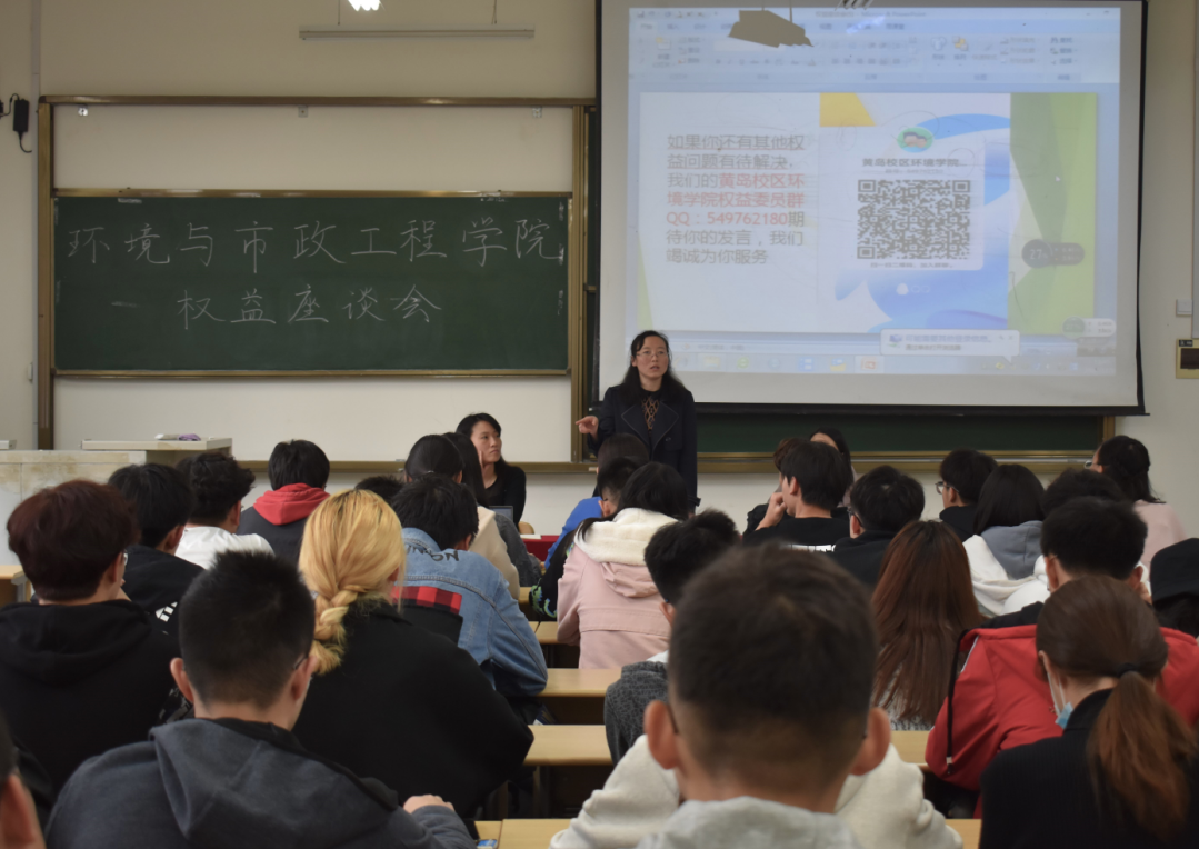 环境与市政工程学院第三期“师生面对面”学生权益座谈会近期在教学楼B116教室如期召开。50名各班的权益委员和10名各年级普通学生代表、校学生会权益部、学院权益部同学共计七十人参加了会议,校团委书记丁于娟、学院学工办主任兼分团委书记张恬和学院2020级辅导员宫克菲作为教师代表参加了会议。会议旨在听取同学们学习生活中遇到的问题,解决各位同学在生活中的权益问题,通过与老师们面对面地交流,了解学生们所需,解答学生疑惑。从而切实保障同学们拥有良好的学习生活环境并维护同学们的权利和利益。