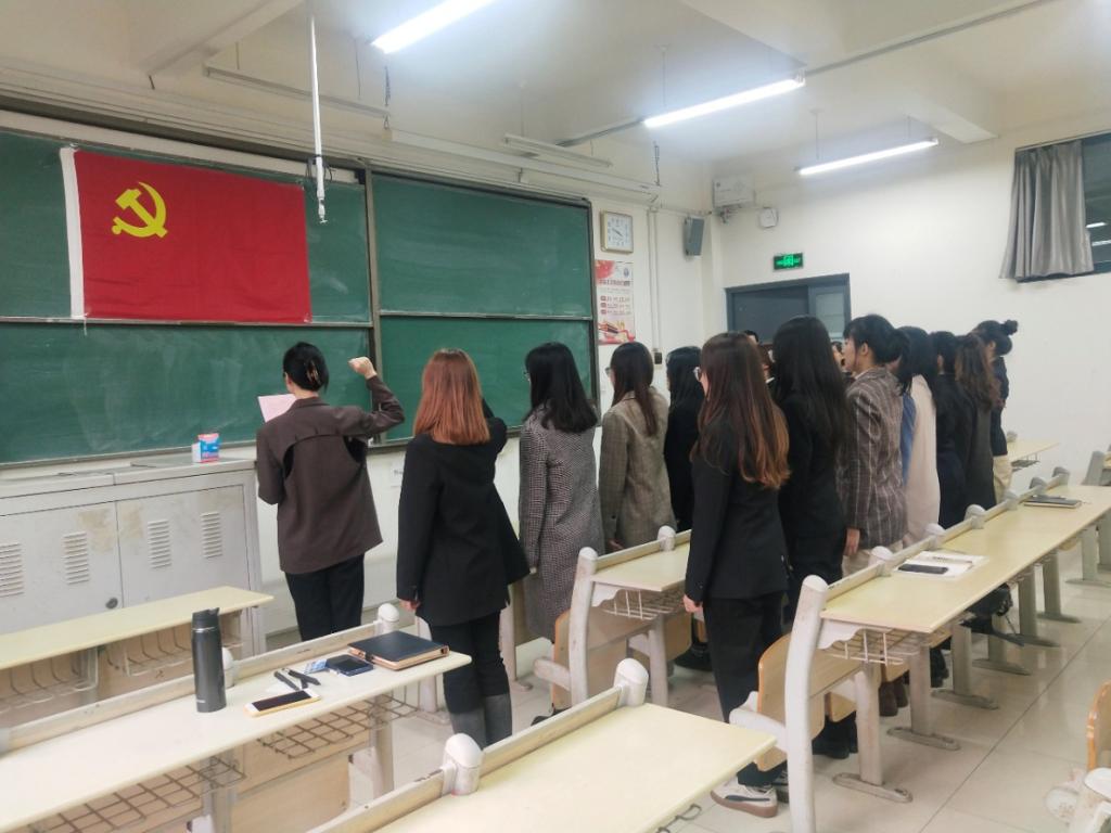 会议伊始,王新向新党员表示真挚祝贺并致以亲切的问候和欢迎,回顾中国共产党成立以来走过的光辉历程及取得的辉煌成就。之后,她向全体新发展党员进一步提出四点明确要求,一是要把握大势,了解和把握国家和学校发展现状,加强理论学习;二是要有责任担当,在学习和生活中带头率先做表率,践行党的全心全意为人民服务宗旨;三是要有实干精神,脚踏实地,工作落到实处;四是要发挥榜样作用,做一名品学兼优的共产党员。她希望大家不辜负学院党总支的期望,通过宣誓自觉增强党性意识,以实际行动践行自己的入党誓词。最后她号召大家要牢固树立党员意识,用党的理论武装头脑,要始终抱有家国情怀,在新时代、新使命、新征程的大环境下为祖国的繁荣富强贡献自身力量。