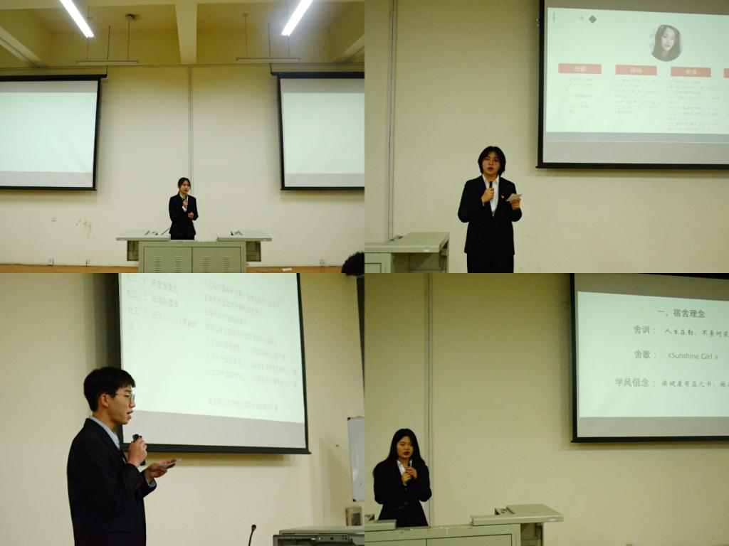答辩正式开始,由经过宿舍申报与学院推荐的10个优秀宿舍依次进行答辩。答辩现场,各宿舍代表通过PPT形式,围绕学习成绩、科创成果、综合素质、突出事迹等方面,进行了现场答辩,充分展示了各宿舍笃学、文明、创新的舍风,由评委进行现场打分。经过评选,B6#710、B1#305宿舍荣获“先优文明宿舍”称号,B6#610、B6#609宿舍荣获“先优学风宿舍”称号。答辩结束后,贾舒文对各组的答辩进行了总结,贾舒文首先肯定了各个宿舍建设取得的良好成效与鲜明特色,同时强调先优文明学风宿舍应发挥模范带头作用,带领各个宿舍在营造良好学风的方式方法上互相学习、互相借鉴,携手营造优良舍风,展现学院学子的风采。广告201班宿舍长李静表示:“此次答辩活动,增强了我作为宿舍长的责任意识,日后的工作中我会将带领舍友,努力将我们宿舍打造成学习氛围浓厚、相处和谐的宿舍。”