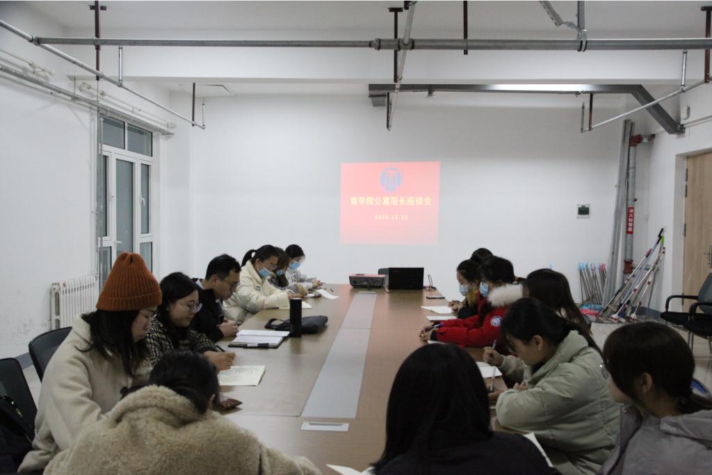 为进一步规范学生公寓管理,完善公寓基层组织建设,推动公寓网格化管理、社区化治理,近日,商学院于北区四公寓红船书屋召开公寓层长座谈会。商学院党总支副书记董兰国、社区辅导员杨洪敏、北区3公寓各层长及学生会生活权益部部长参加座谈。