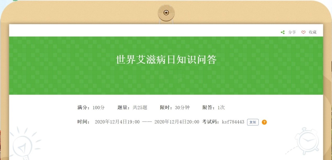 活动采用线上知识问答的形式,旨在使更多的同学了解艾滋病相关知识,减少同学们对艾滋病的误区,增强自身防护意识,全院共有233名同学参加在线答题。题目以选择题为主,涵盖艾滋病症状表现、如何预防、治疗措施、病人关爱等,通过答题同学们加深了对艾滋病的认识,大家纷纷表示会将防艾知识传播给周围更多的人,呼吁大家关心关爱艾滋病患者。