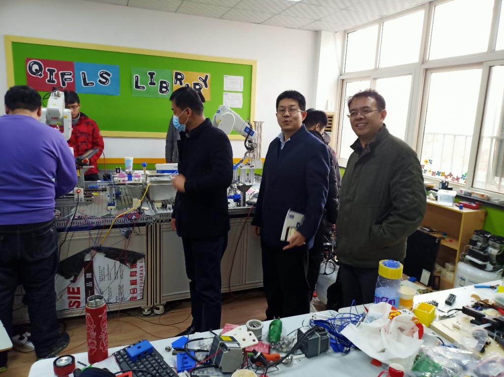 12月7日,信息与控制工程学院党总支书记董典同、副书记曲良波、院长助理周炜、通信教研室主任王绪虎一行四人专程赴学院合作办学企业青岛英谷教育科技股份有限公司教育实训基地调研并看望实训学生,英谷教育科技股份有限公司韩敬海总经理、白鸿涛副总经理和张玉星副总经理等负责人陪同走访调研。