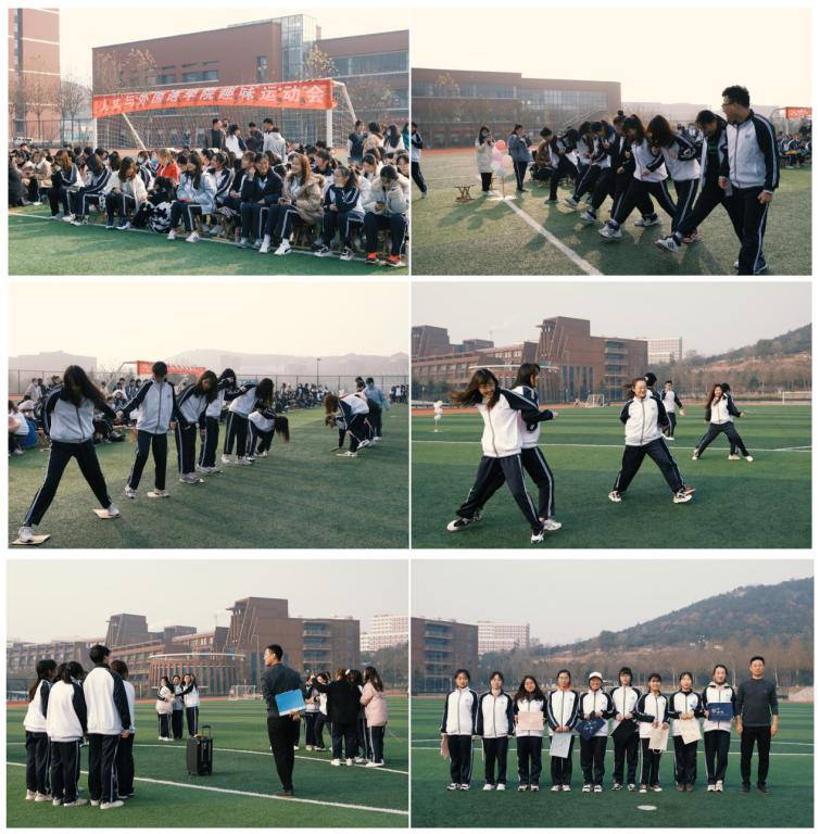本次运动会改变以往以竞技体育为主的比赛形式,以班级和宿舍为单位开展活动形式多样、氛围轻松愉快的趣味活动。本次趣味运动会共有四个项目与一个暖场活动,分别是10人11足、纸片接力、背对背夹气球接力、障碍运球接力以及爱的抱抱。比赛顺序由各班抽签决定。下午1 时,比赛正式开始。第一个环节10人11足比赛中的几队参赛组合都配合默契,竞争激烈。虽然中途有不少同学摔倒在地,但是为了集体的荣誉他们立即爬起,奋勇直追。紧接着,第二个环节纸片接力开始。为了胜利,同学们都各显神通,场面让人捧腹不已。随后,第三个项目背对背夹气球接力正式开始。比赛过程跌宕起伏,惊喜不断。有在随后的障碍运球接力中,选手们姿态各异,使得现场笑声不断。最后的暖场活动爱的抱抱,由王才升主持,选手敏捷的反应能力和观众高涨的情绪使比赛现场热闹无比,现场气氛达到最高点。最终,汉语言201班获得10人11足项目第一名;英语203班获得纸片接力项目第一名;英语202班获得背对背夹气球接力项目第一名;社工201班获得障碍运球接力项目第一名。
