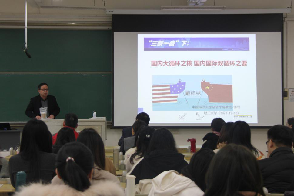 12月10日下午,“西海岸商学论坛(第十七期)”在青岛理工大学西海岸校区主教学楼B228教室举行,本次讲座特邀请中国海洋大学经济学院副院长兼博士生导师戴桂林教授担任主讲,主题为“‘三新一疫’下:国内大循环之核 国内国际双循环之要”,商学院党总支书记王粲主持报告会,商学院部分师生参会。