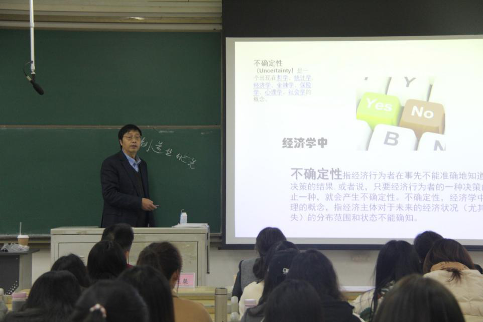 王粲代表商学院对戴桂林教授的到来表示欢迎,强调同学们一定要认真聆听讲座,充分理解把握讲座的内涵,不断增长学术知识、开拓学术视野、增长科研本领。戴桂林教授以“三新(新常态,新平庸,新秩序)一疫”为切入点,结合学科研究背景,为同学们剖析当前复杂严峻的经济形势,揭示如今以“国内大循环为主体,国内国际双循环相互促进”的新发展格局。他从军事、经济、政治、社会、科技、企业发展等方面,向同学们解释战略制胜与致胜的时代特点,引出指导经济发展与改革的“顶层设计”理念,以简洁直观的示意图向大家讲解出口导向式和进口替代式的框架结构,为同学们分析了世界贸易格局的深度变化。戴桂林教授强调海洋是高质量发展战略要地,实施陆海统筹、海陆协同的向海经济战略,放眼世界百年未有之大变局,蓝色行动在脚下。最后,戴教授同现场师生进行了积极互动,详细解答疑问,现场氛围热烈。