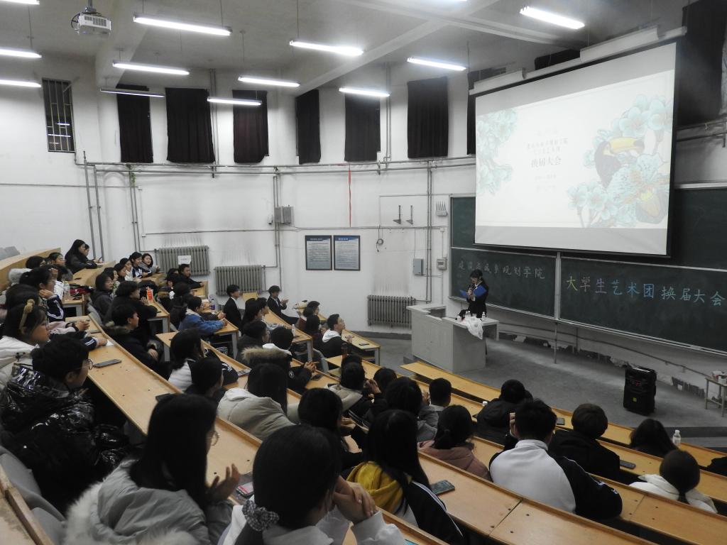 12月11日,建筑与城乡规划学院大学生艺术团换届大会在建筑馆111教室举行。2017级辅导员杨霈宣、2018级辅导员王明慧、2019级辅导员郭轶群、2020级辅导员郑润琪、就业辅导员张宇、学生会主席团成员及相关部门负责人、大学生艺术团全体成员参加此次换届大会。