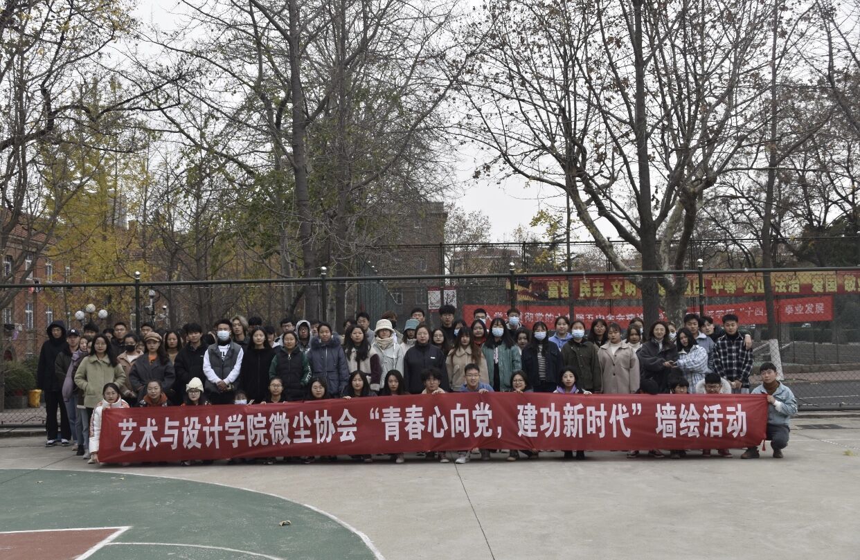 为引导和激励学生学习和发扬以爱国主义为核心的五四精神,不忘初心,牢记青春使命,近日,艺术与设计学院微尘协会于市北校区北苑开展了为期两天的“青春心向党,建功新时代”主题墙绘活动,各年级总计一百余人参与了此次主题墙绘活动。