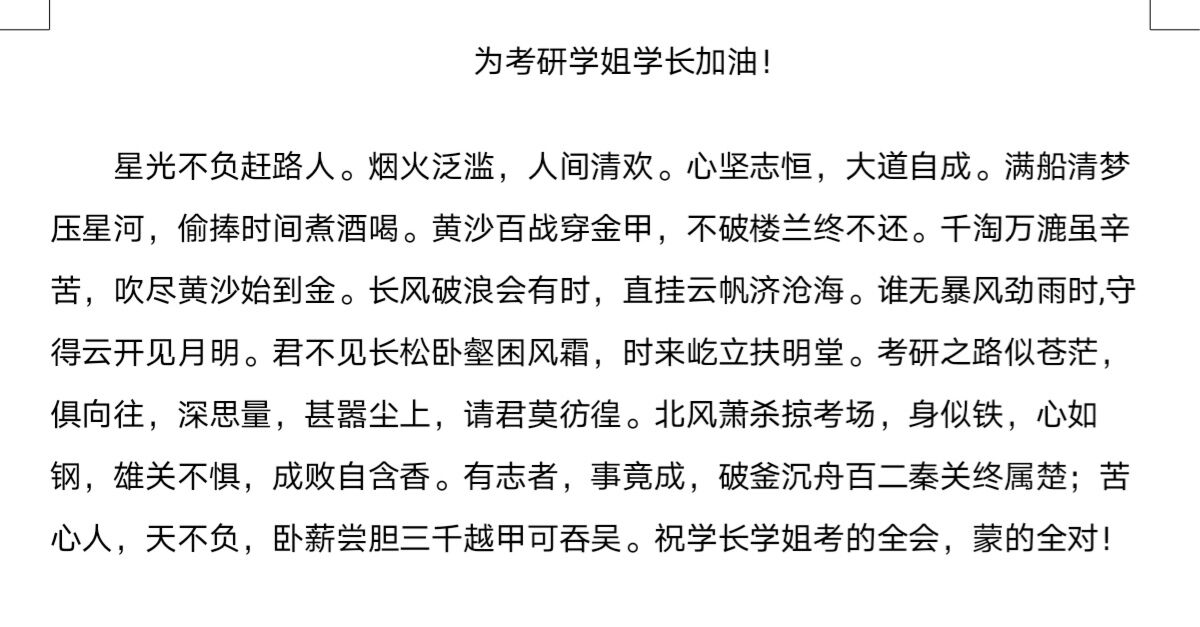 笔尖共舞考研梦、视频祝福暖心田:“相信这一年的披星戴月,埋头苦干,都会化作你们考场上的力量,相信你们,祝福你们。”“前路浩浩荡荡,万事尽可期待,愿你一往无前,盼你胜利凯旋。”……在到梦空间中,商学院面向各支部征集祝福文案和视频,以“文字承载祝福”为主题,“烟火泛滥,人间清欢;心坚志恒,大道自成”,为考研学子书写最诚恳的祝愿;以“镜头记录祈愿”为主题,寄托心愿以视频呈递。同学们将千言万语道不尽的珍重,汇聚在一句句暖心祝福语和一个个暖心祝福视频中。希望这些暖心祝福能够化作考研学子前行的勇气,披荆斩棘,终获成功!