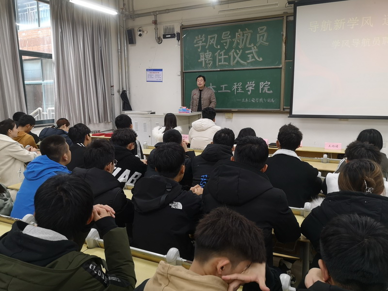 为进一步促进2020级新生学风建设,加强班级建设,充分发挥学生干部的先锋模范作用,增强责任感、使命感和自律意识,12月11日,土木工程学院于嘉陵江路校区主教B133室举行“学风导航员”聘任仪式,学院党总支副书记邵先锋,辅导员王雨婧、李恺、刘晓桐,全体2020级学风导航员及本科2020级班团参加聘任仪式。