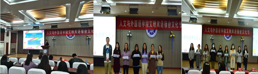 公寓文化节开幕式由辅导员贾舒文主持,她号召莘莘学子共筑文暖寓语公寓,内外兼修,内修于心、外化于行,真正让文暖寓语公寓成为学生教育管理服务的前沿阵地,增加学生的“幸福感”“获得感”“满足感”。开幕式现场,辅导员陈刚、扎西央宗分别为党员宿舍和免检宿舍成员授牌,党员宿舍代表朝语181班王然和免检宿舍代表英语201班苏家琳上台发言,围绕卫生、学习、文明、榜样示范四个方面作出表态,“为周围同学带好头,努力做好文暖寓语公寓卫生建设,勇于展现人外学子公寓文明风貌”,获得在座学生的阵阵掌声。