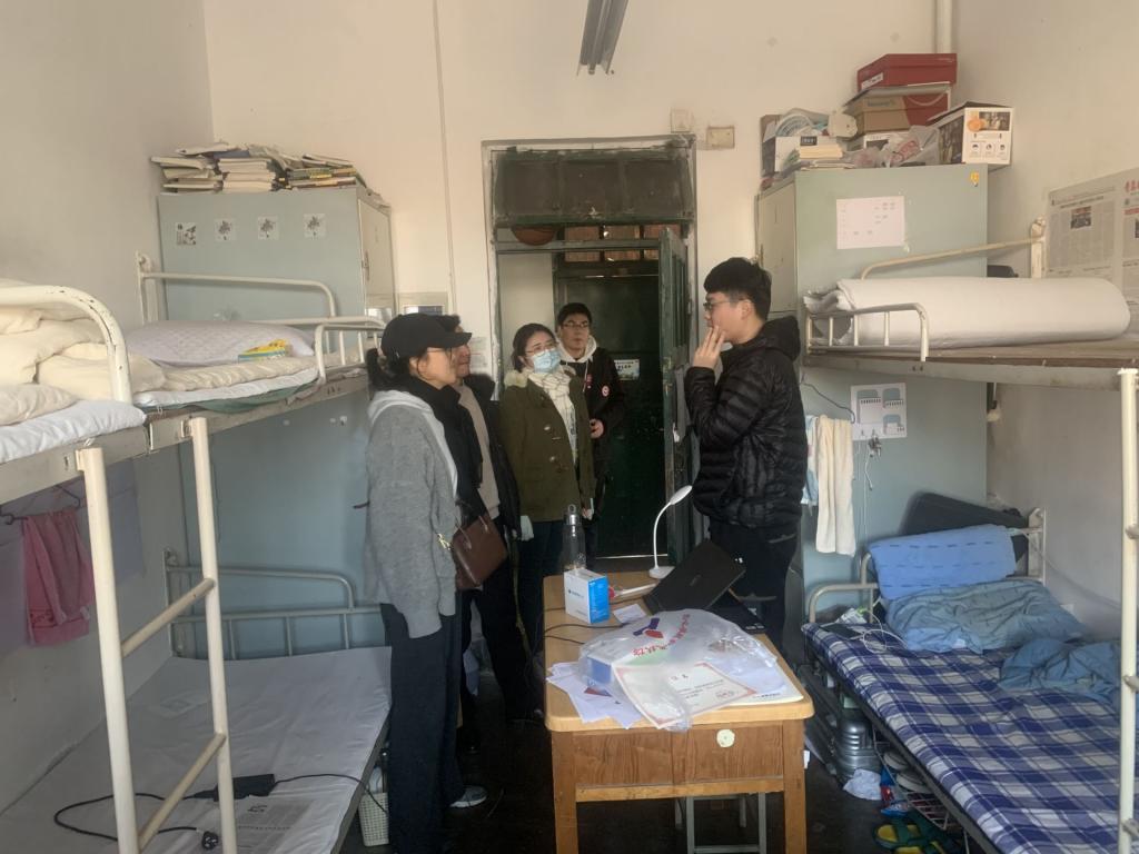 范晓光带领各年级辅导员、班干部代表和公寓管理委员会成员依次检查了1公寓、2公寓、3公寓、甲楼学生宿舍,对各宿舍卫生情况、消杀通风情况、宿舍禁烟落实情况、宿舍阳台是否堆积可燃杂物、是否违规使用电器等方面进行了重点检查,并与同学们进行了深入交流,了解了毕业班在校同学的就业情况、低年级同学们的学习生活情况;叮嘱同学们要切实增强宿舍安全意识,自觉遵守宿舍规章制度,杜绝各类安全隐患;在疫情防控常态化背景下要养成良好的生活习惯,保证做好每日宿舍消杀、每天开窗通风不少于70分钟并晾晒被褥,预防各类冬季传染性疾病,共同营造整洁有序的宿舍环境。