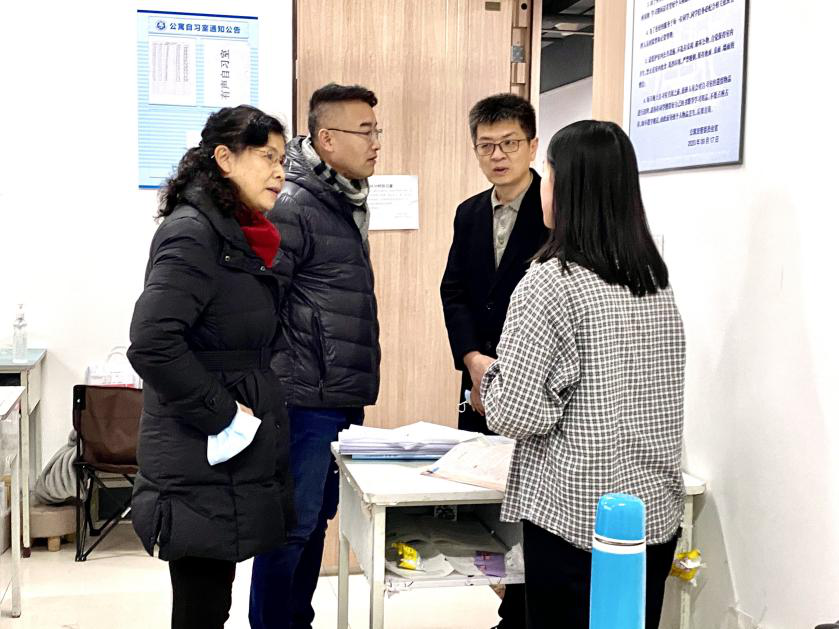 学院领导与自习室考研同学亲切交谈,详细了解考研学生目前的学习生活情况,鼓励大家迎难而上,不抛弃,不放弃,坚持奋战到最后一刻;同时希望大家不要有过重的心理负担和压力,在最后备考冲刺阶段,要注意劳逸结合,以最饱满的状态参加考试,认真做好考前各项准备工作。学院领导老师细心考察公寓自习室配套设施环境,提出指导性建议,为自习室配套消毒设备,保证疫情环境下的安全学习环境;与考研同学的交谈中,17级广告学专业的范靖文同学说:“之前都没有想象过可以在公寓楼内自习学习,每天省去了很多在路上和找自习室的时间,有声自习室也是为考研学生量身打造的,学院能够高效并细致地解决考研学生的困难,让我们觉得考研路上有了很多帮助和支持,特别温暖。”