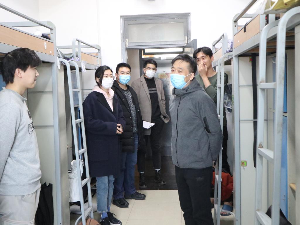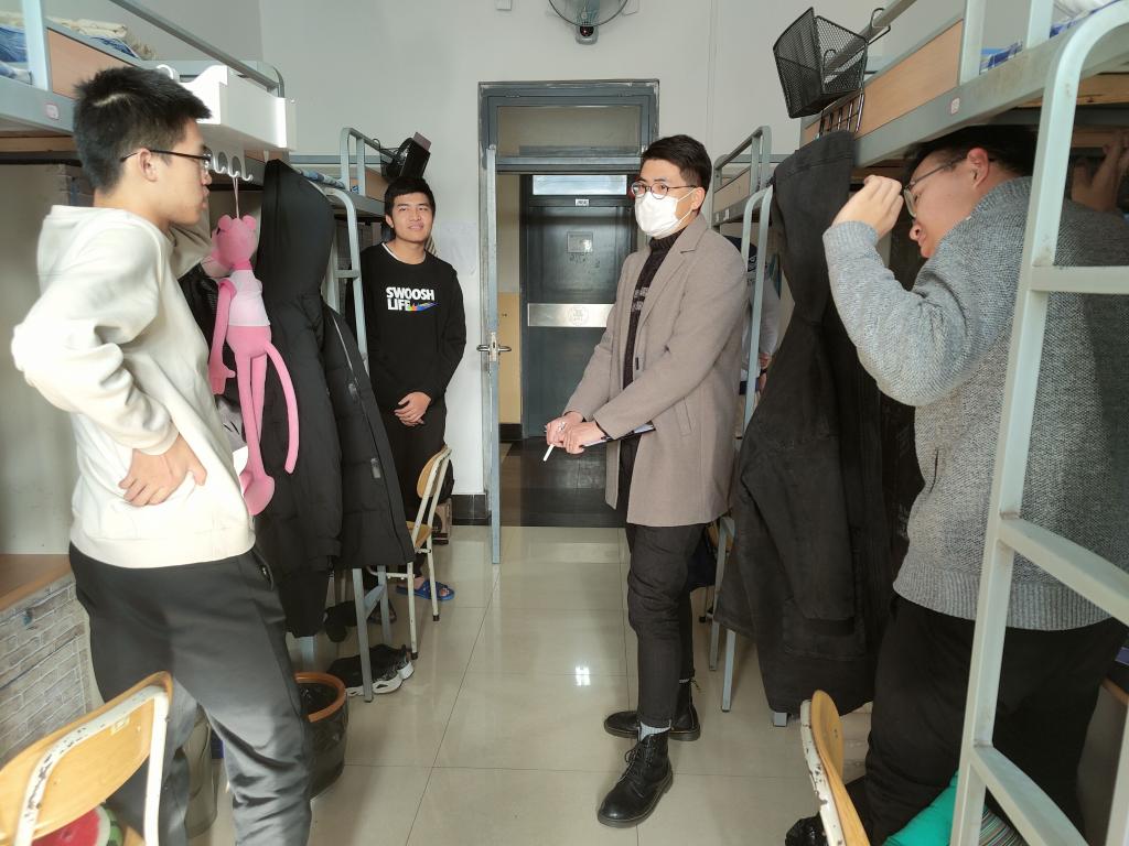 走访过程中,各位老师就宿舍安全设施、卫生条件等诸多方面进行了检查,亲切地了解同学们的学习、生活等细节。提醒大家注意用电安全,关注天气变化,记得添衣保暖,督促同学们自觉遵守宿舍管理规定,坚决抵制身边的不文明行为。同时对之前存在问题的宿舍,能积极改进,卫生更加整洁,学习氛围愈加浓厚等提出表扬,希望大家能够继续保持,不断进步。嘱咐20级新生面对即将来临的期末考试调整状态,合理安排时间复习,注意考场纪律,为自己一学期的努力交出一份满意的答卷。对即将参加考研的同学们表示了殷切希望,给予了他们鼓励与支持,希望大家都能实现自己的理想和目标。在研究生宿舍就研究生就学业进展、未来规划做了深入交流,了解他们的升学、求职情况,促使学生树立正确的就业观,调整好就业状态,积极主动地就业。毕业生们纷纷表示,会认真准备,积极就业,并在未来的工作、学习生活中踏实做人,认真做事,为母校争光。