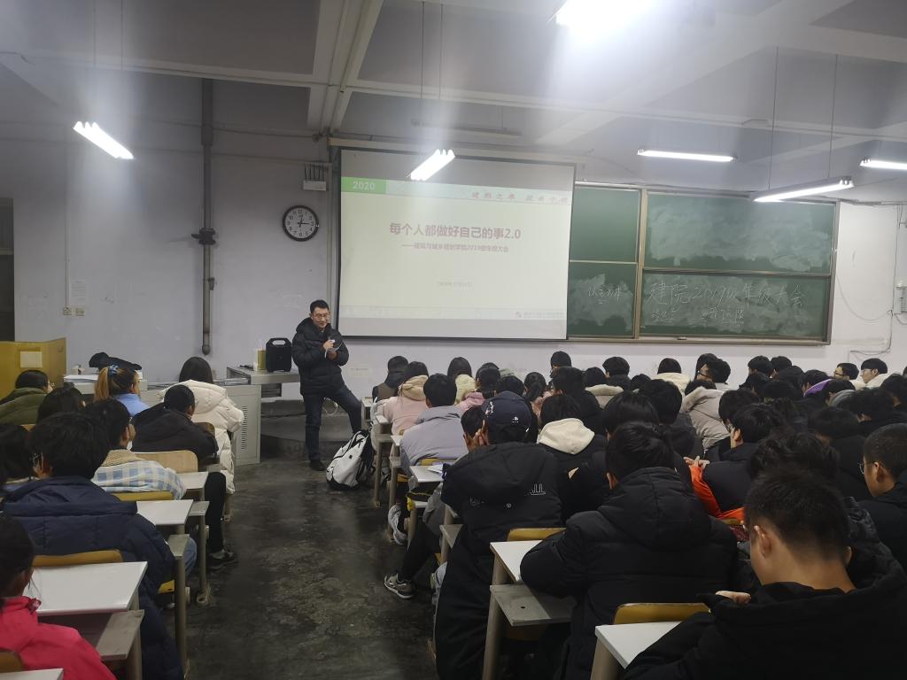 近日,建筑与城乡规划学院以年级为单位召开期末大会。各年级期末大会分时段进行,学院党总支副书记高江会同各年级辅导员以“筑美于心·期许未来”为主题,根据学生特点,分别设置不同环节,将同学们面临的问题、困惑进行专门解释,同时从寒假放假安排、疫情防控、安全教育、考风考纪等方面进行了详细讲解。
