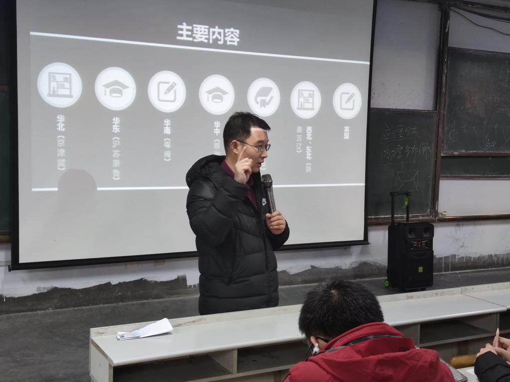 辅导员王明慧从初试科目、报录比、院校层次等方面,分地区向大家详细介绍了61所招收建筑学、城乡规划学和风景园林专业的院校。她强调18级同学正处于一个承上启下的关键阶段,要进行自身综合分析、合理定位,再做出合理选择。