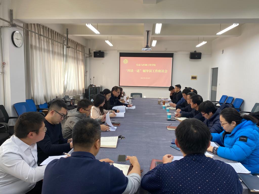 为落实学校关于加强辅导员队伍建设的实施意见,切实加强辅导员队伍专业化职业化建设,全面做好辅导员队伍建设总结工作,1月16日上午,信息与控制工程学院在主教学楼A507组织开展了“四谈一述”辅导员工作座谈会。黄岛校区机关党总支书记孙张飞、学生工作处副处长鞠志强、学院党总支书记董典同、党总支副书记曲良波和学院全体辅导员参加了本次座谈会。